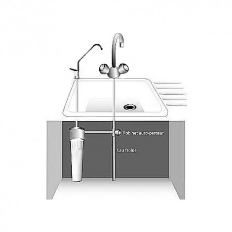 Filtre à eau avec cartouche, modèle sous évier, avec accessoires de montage sous évier